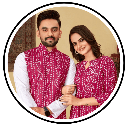: Rani Pink Bandhej Ethnic Skirt & Blouse Set with Jacket | Modern Indian Festive Fashion