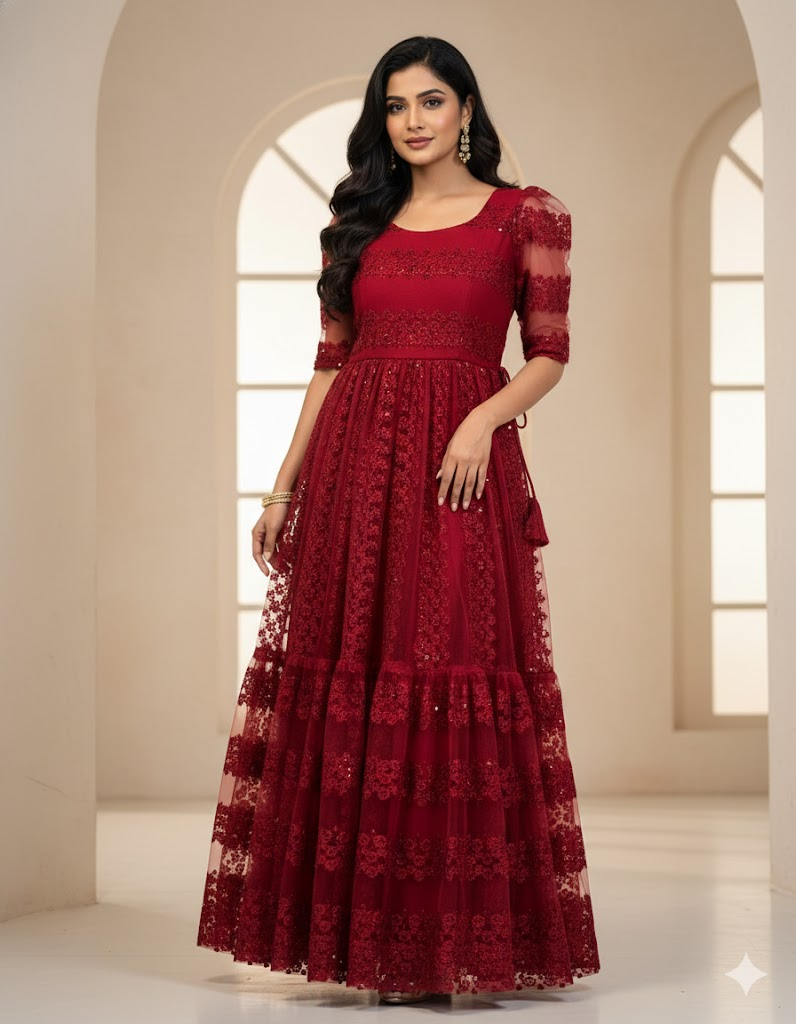 Be the first to review “Maroon Embroidered Gown, Sequin Anarkali Dress, Party Wear Gown for Women,”