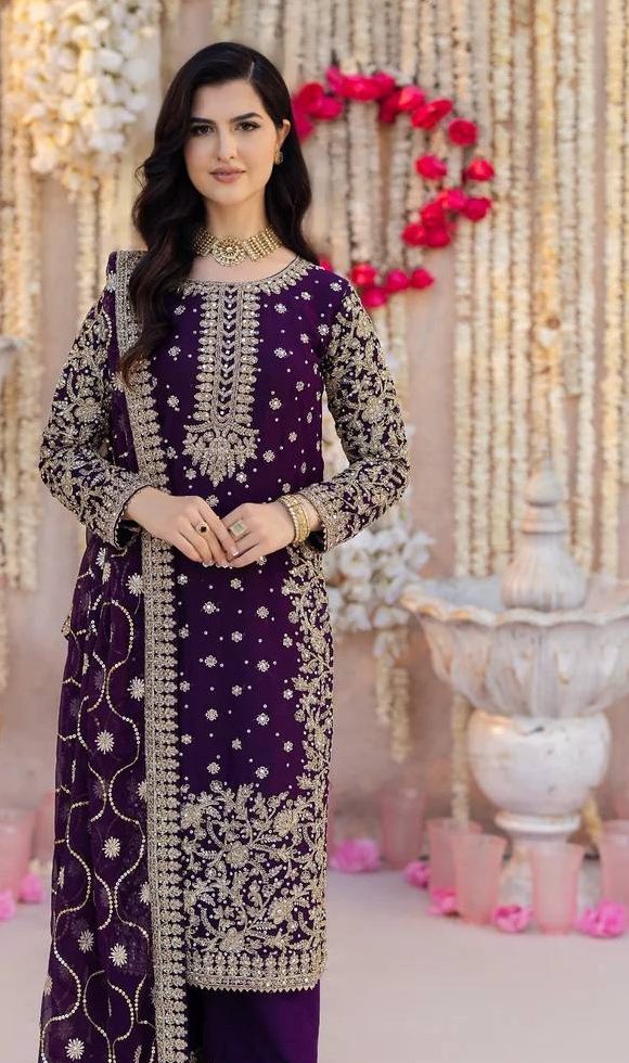 Dazzle in our exquisite Deep Purple Embroidered Salwar Suit, a perfect blend of traditional elegance and contemporary style. Crafted with intricate golden (or silver/white) threadwork, this 3-piece set includes a beautifully embellished kurta, comfortable straight-fit palazzo pants, and a matching dupatta, ideal for weddings, festivals, and special occasions. Shop now for a truly regal look!
